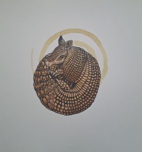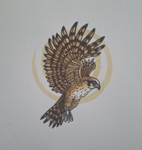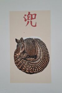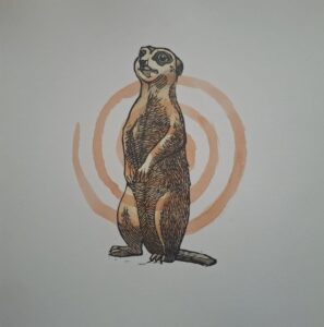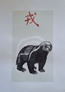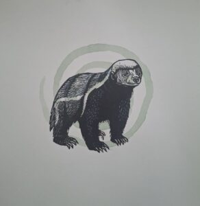 Theo Paul VorsterTitle: Honey Badger-Fearless, tenacious, and confidentMedium: Hand printed Lino coloured in Acrylic Ink Size: Paper Size : 21cm x 29.7cm, unframed