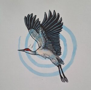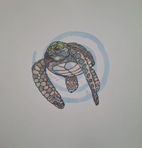 Medium: Hand printed Lino coloured in Acrylic Ink
