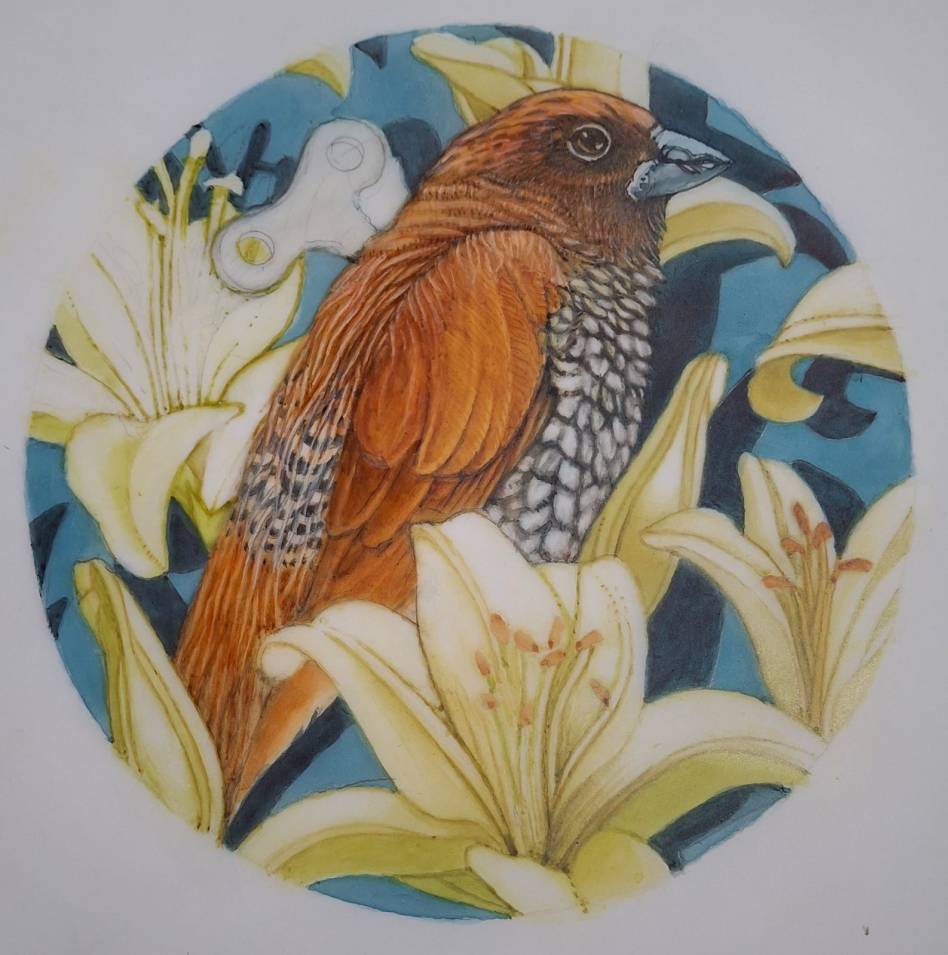 Theo Paul VorsterTitle: Bird with Flowers 4Medium: Archival Print Limited Edition Size: Image size 16cm in diameter, unframed