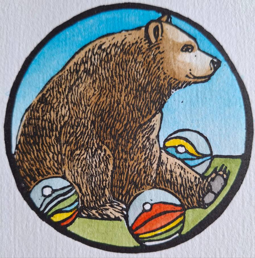 Medium: Hand printed Lino coloured in Acrylic Ink