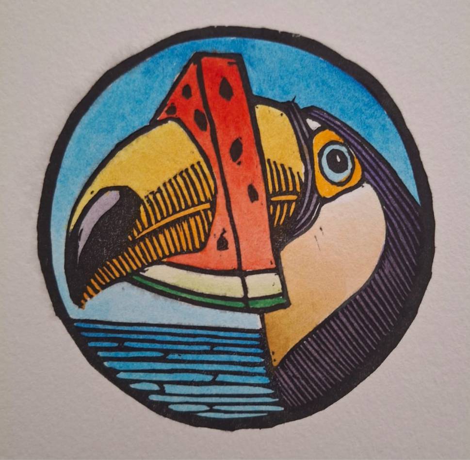 Medium: Hand printed Lino coloured in Acrylic Ink