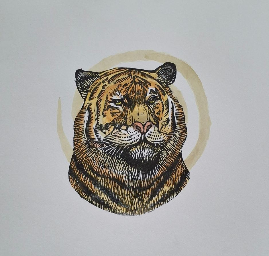 Medium: Hand printed Lino coloured in Acrylic Ink