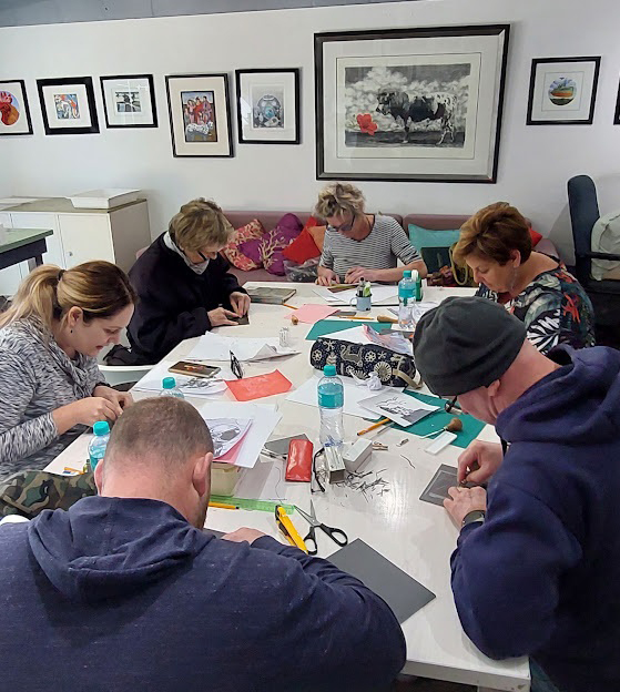 My one day lino cutting workshops are normally hosted @ my studio in Stellenridge, Bellville, Cape Town.